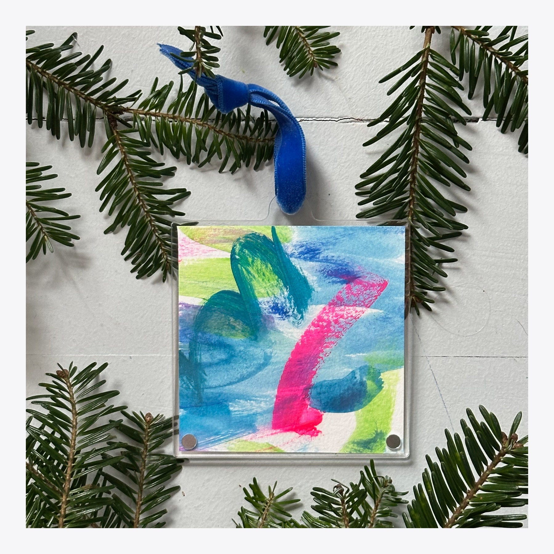 Cobalt blue velvet ribbon / Acrylic frame 3" x 3"