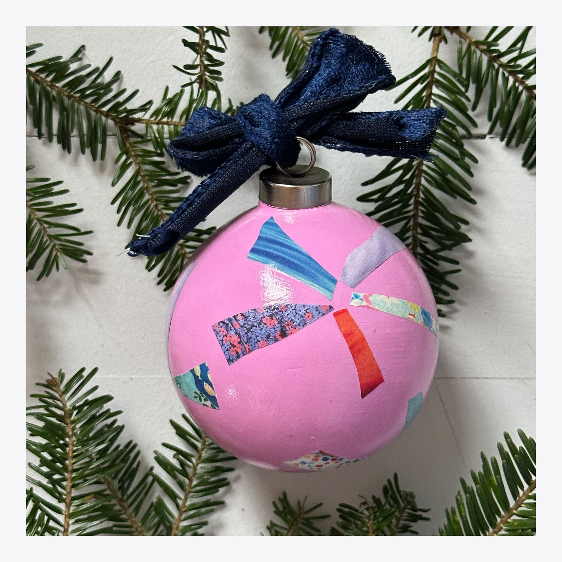 Navy woven ribbon / Ceramic bisque ball, diameter 3 1/2"