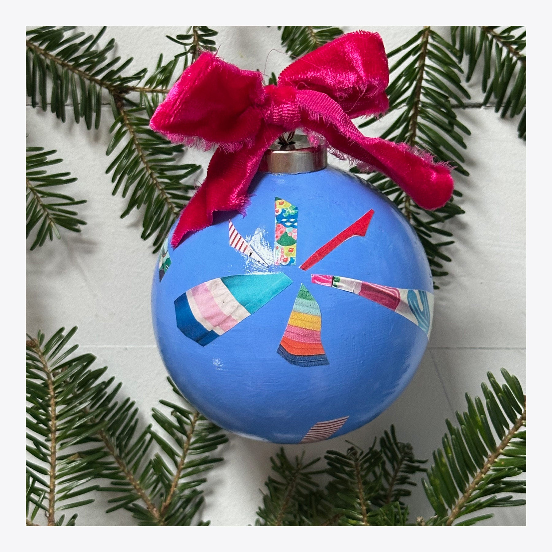 Hand painted in vibrant cornflower with my signature cut flower collaged petals.
