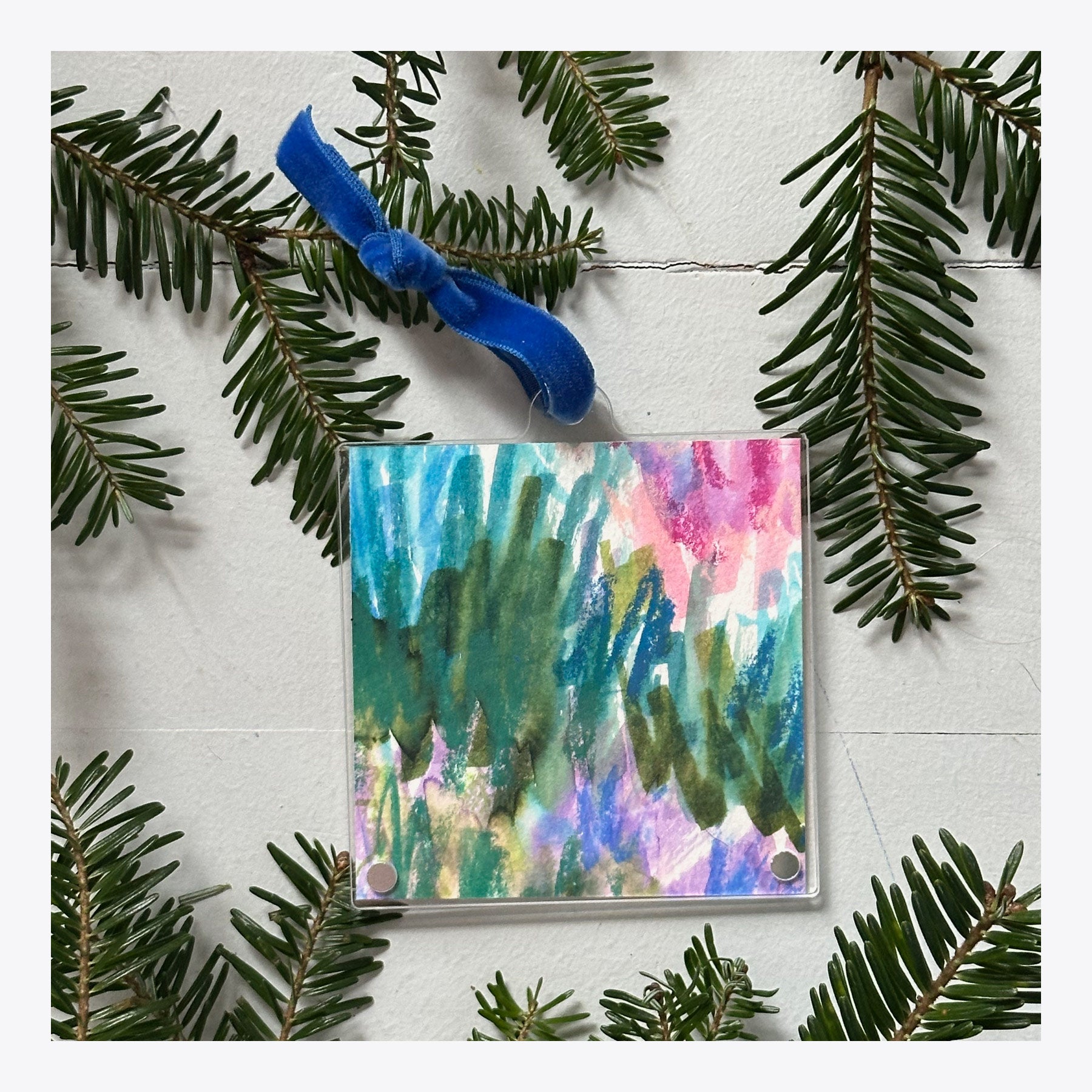 Cobalt blue velvet ribbon / Acrylic frame 3" x 3"