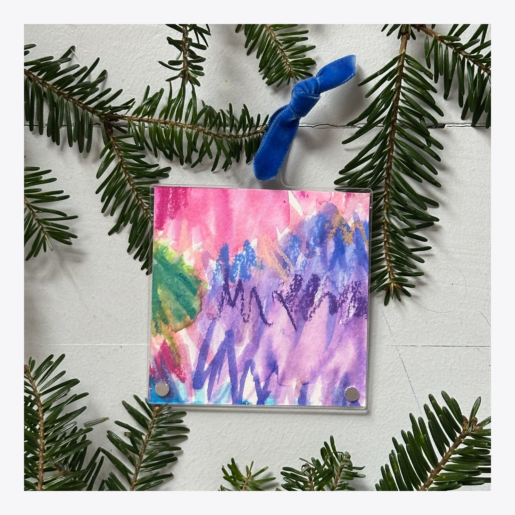 Cobalt blue velvet ribbon / Acrylic frame 3" x 3"