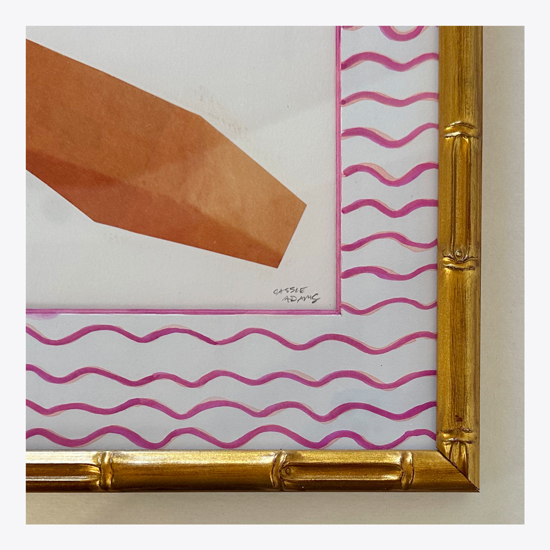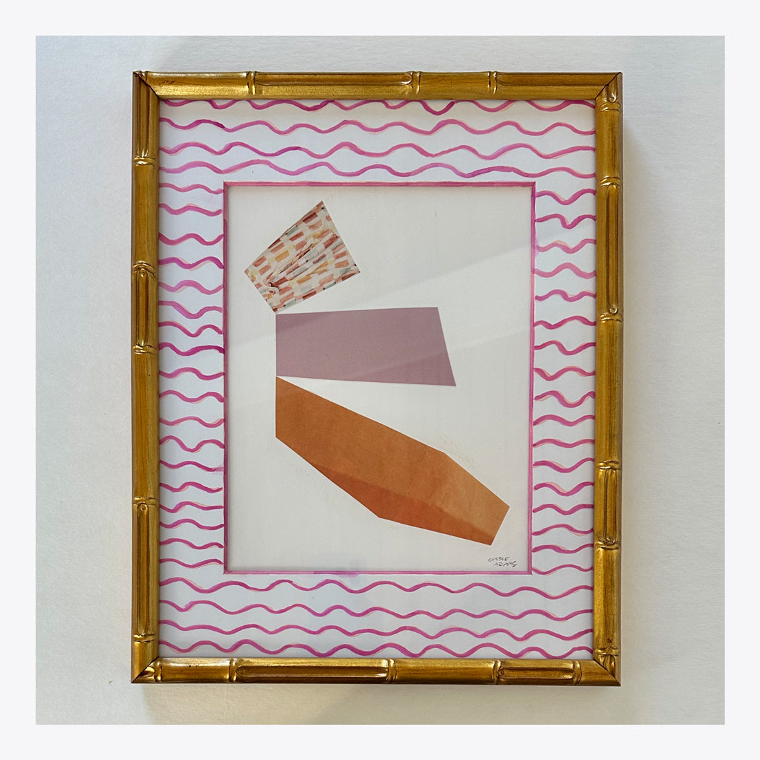 10" x 8" // Collaged cut paper, hand painted waves mat in berry. Year 2025.