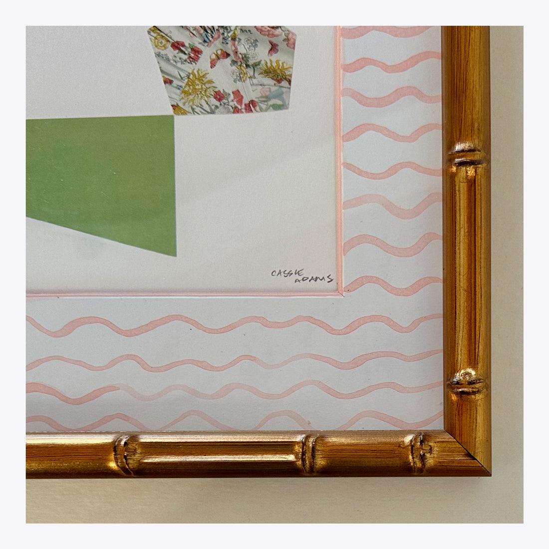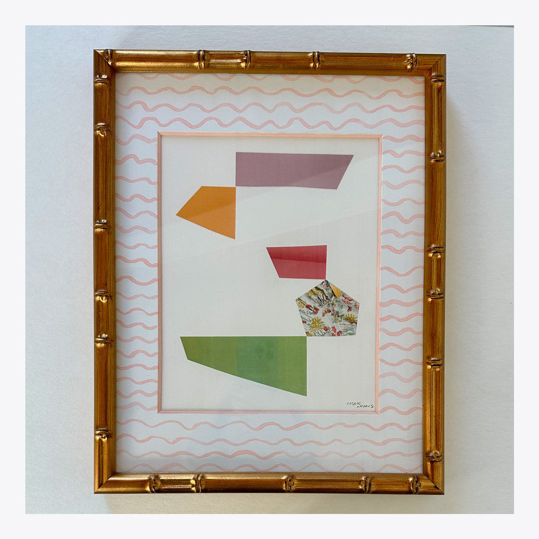 10" x 8" // Collaged cut paper, hand painted waves mat in pale pink. Year 2025.